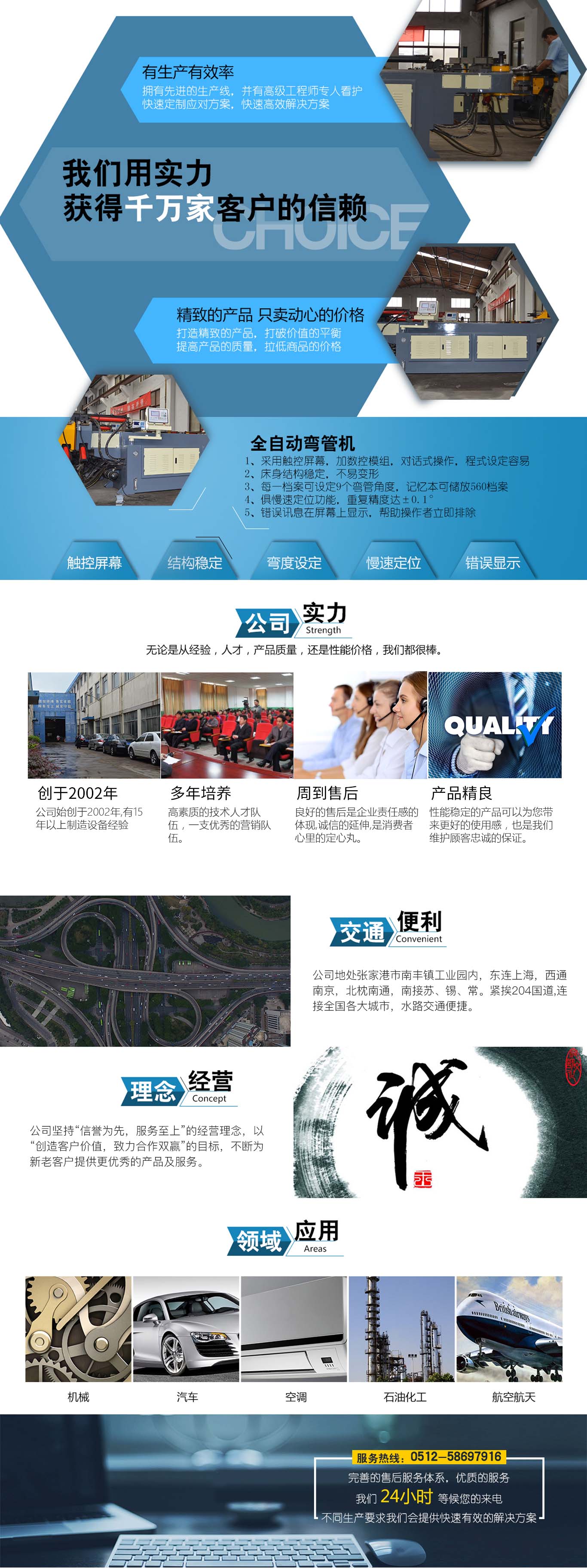 張家港市雙和機(jī)械制造有限公司始建于2001年,占地面積12000平方米,南鄰蘇州、無(wú)錫、上海,東鄰常州、南京,交通便利,位長(zhǎng)三角中間地段,風(fēng)景優(yōu)美的張家港。 雙和公司至創(chuàng)立開(kāi)始,引進(jìn)了國(guó)外的設(shè)計(jì)制造理念,組建了企業(yè)生產(chǎn)管理優(yōu)秀團(tuán)隊(duì),致力于管材加工機(jī)械研發(fā)、設(shè)計(jì)、制造。創(chuàng)新的設(shè)計(jì)理念,嚴(yán)格的質(zhì)量把關(guān),專業(yè)的售后服務(wù),不斷提升了我在整個(gè)行業(yè)的影響力。 雙和公司生產(chǎn)的系列產(chǎn)品分為彎管機(jī)、切管機(jī)、縮管機(jī)、磨齒機(jī)、伺服彎管機(jī)、數(shù)控彎管機(jī)、液壓彎管機(jī)、自動(dòng)切管機(jī)、管端成型機(jī)、倒角機(jī)、大弧滾圓機(jī)、鋁切機(jī)、壓彎?rùn)C(jī)等管材加工機(jī)械,廣泛用于航天業(yè)、造船業(yè)、汽車(chē)制造、鍋爐制造、自行車(chē)、摩托車(chē)、體育健身器材、管制品家...